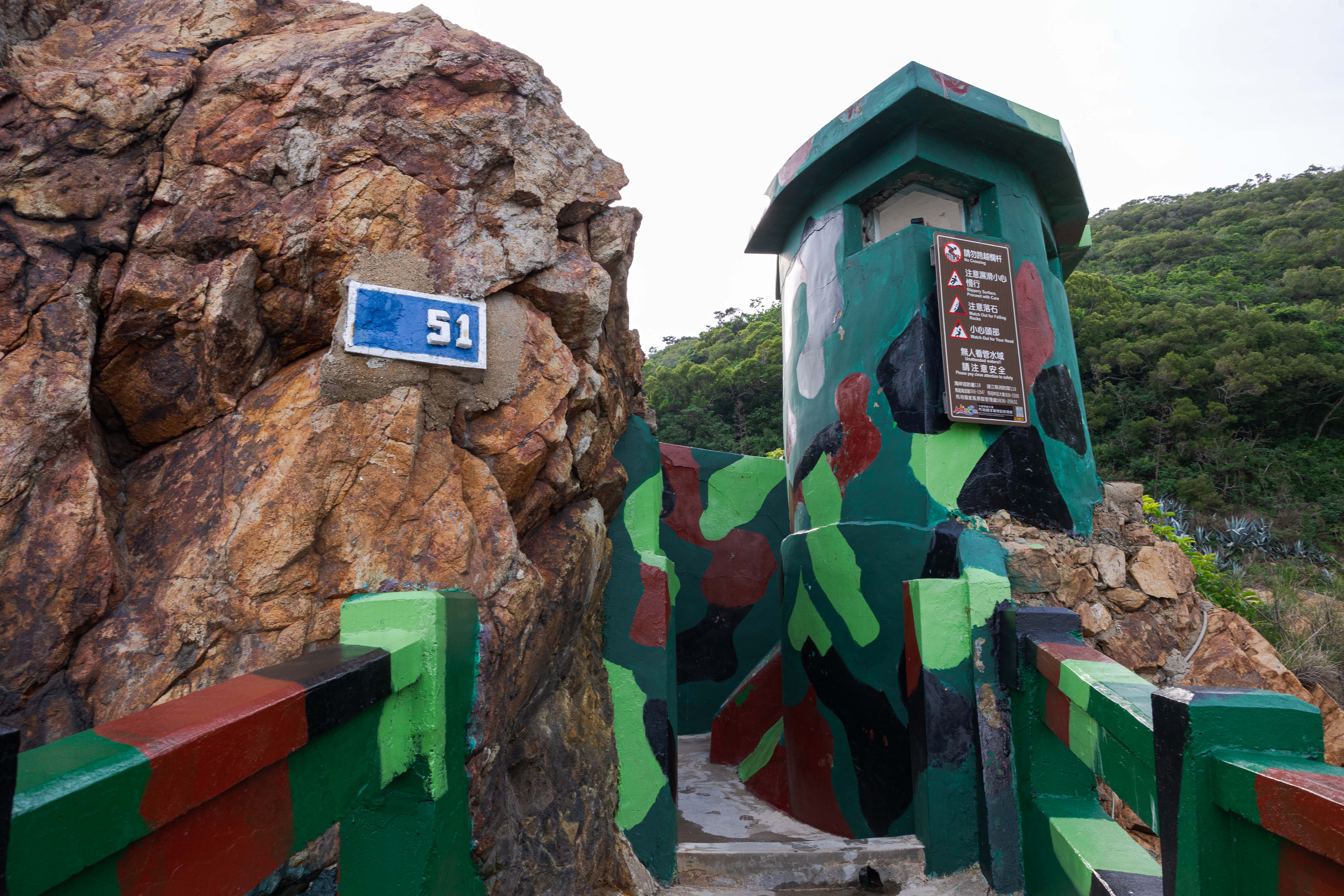 鉄堡は南竿郷仁愛村の海にはり出た岩礁にあります。鉄堡は花岡石岩礁を積み立てて築かれており、以前はここを拠点に軍が防衛を図りました。なかには地下道や砲台座、地下石室、発射口、部屋等が設けられています。現在は通路や柵が整備され、無料で開放しています。